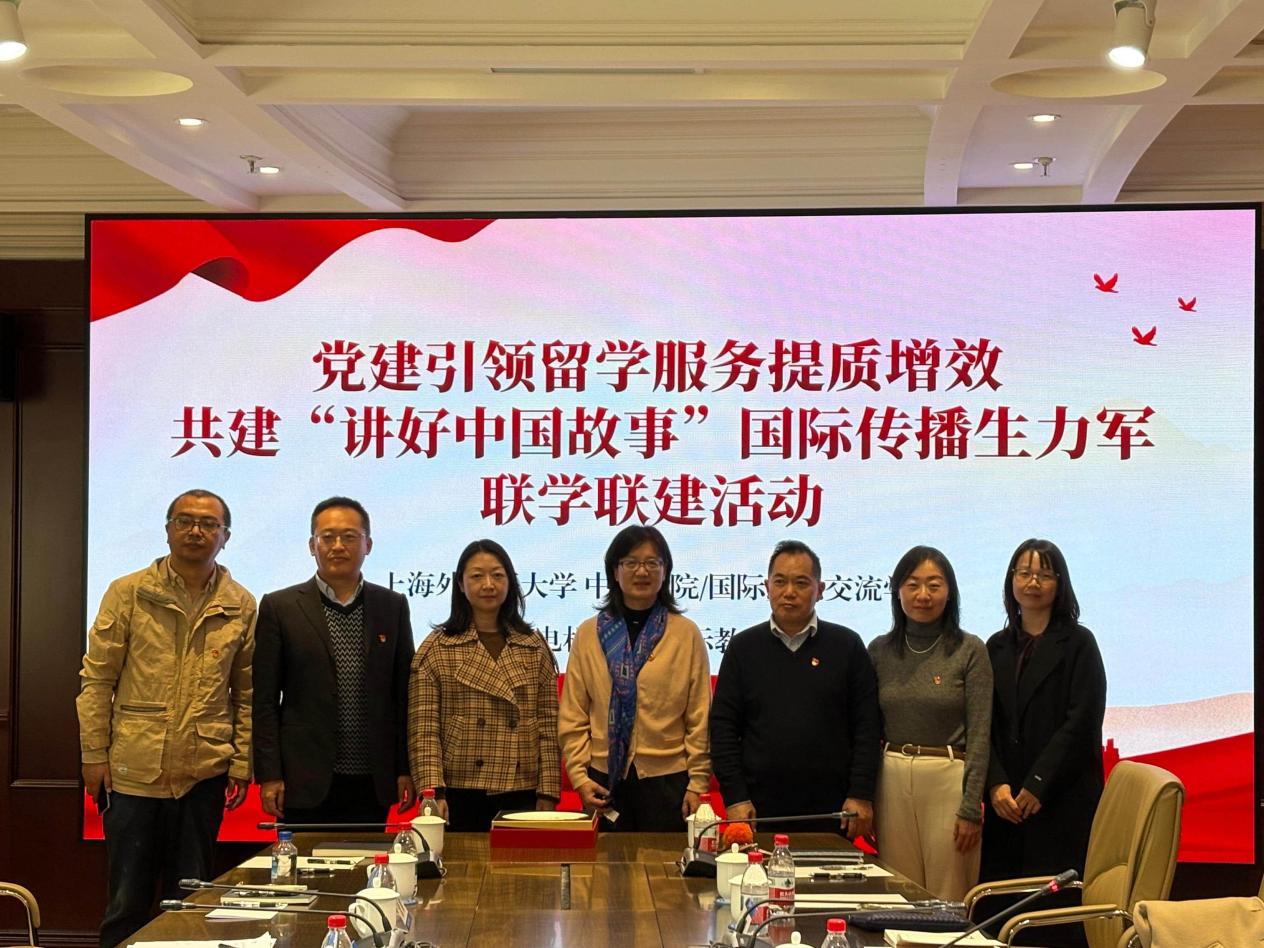 2025年11月21日,上海外国语大学中文学院/国际文化交流学院教工第二党支部与上海电机学院国际教育学院党支部共同举办校际党建联学主题党日活动。本次活动以“党建引领留学服务提质增效,共建‘讲好中国故事’国际传播生力军”为主题,聚焦国际化人才培养与留学服务升级等核心议题开展研讨。上海外国语大学中文学院/国际文化交流学院党委书记张艳莉、院长陈昌来,上海电机学院国际教育学院党总支书记何宁、院长鹿钦佞及双方教师代表参会,共绘校际协同发展新蓝图。