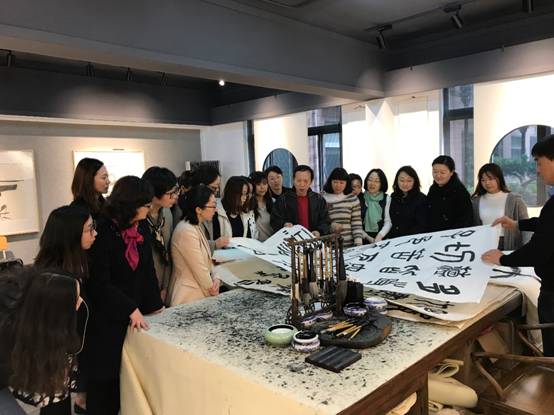 杨老师对书法深入浅出的讲解,让老师们对古篆八法和练习书法有了全面概括的认识。最后,老师们共同欣赏了留学生的书法作品。大家惊讶于留学生书法写作的水平,感叹留学生书法学习取得的进步。