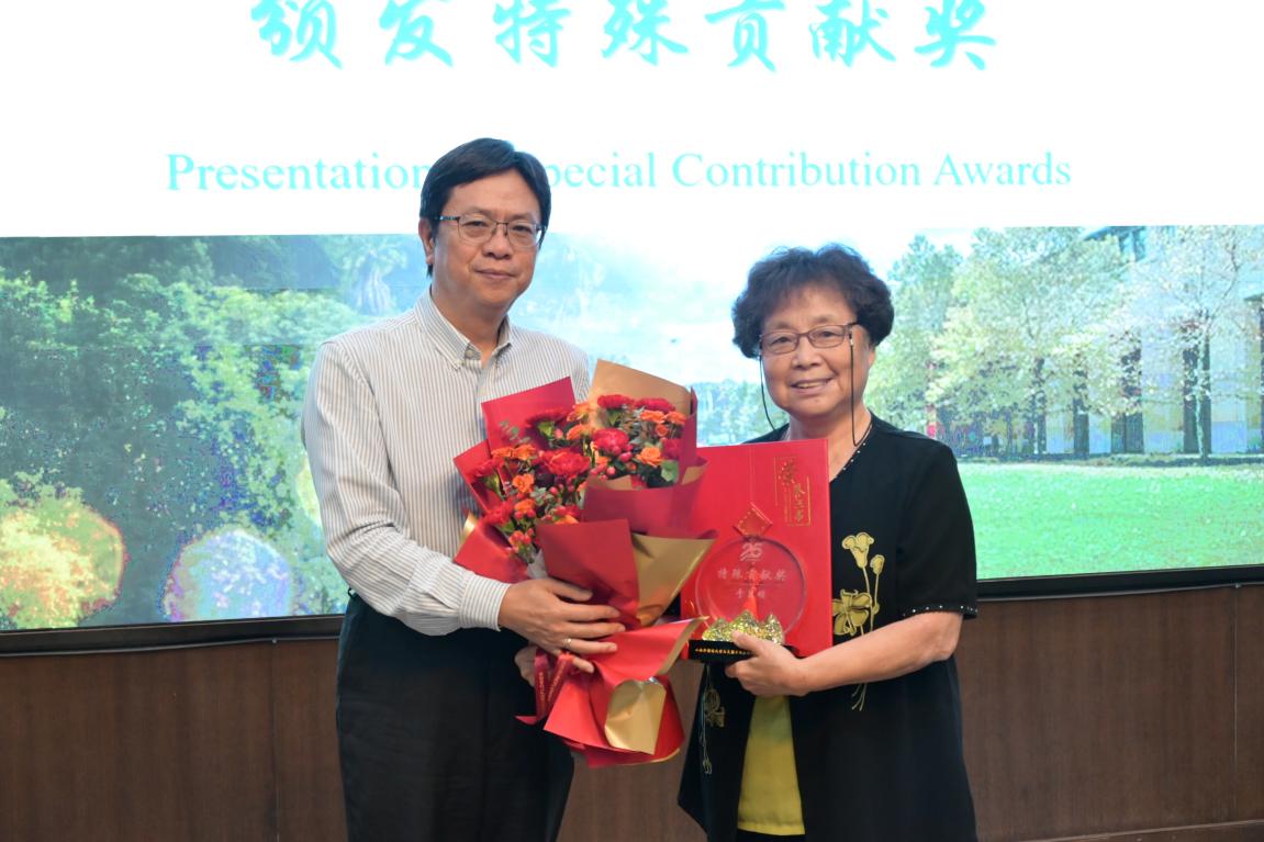 随后,李岩松为美国卡内基梅隆大学语言、文化和应用语言学系荣休教学教授、上外64届校友于月明女士颁发“特殊贡献奖”,以此表彰她作为项目创始人25年来为推动两校合作付出的巨大努力。正是这份以初心致匠心的坚守,使得两校的合作历久弥新。于月明教授表示,这份荣誉不仅属于她个人,更属于所有为两校合作付出努力的师生,她将继续为两校的友谊和合作贡献力量。