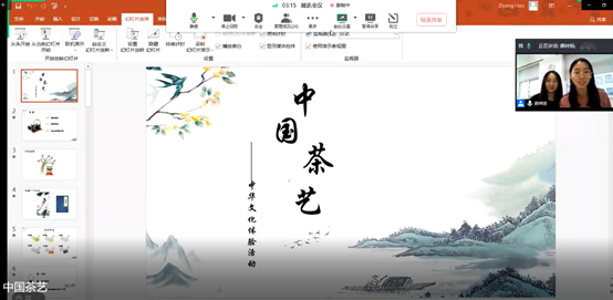 领略山川风物,品味悠悠茶香。11月27日,中国茶艺文化交流活动款款而来。本次活动分为“讲解”“展示”“互动”三个环节,在讲解环节中,主讲人郝梓扬以神农和陆羽为切入点,介绍了茶的历史、种类、形态特征、生长环境、制作工艺等;在展示环节中,主讲人谈纯倩向大家现场展示大红袍、普洱茶、花茶等茶叶,并选取留学生最感兴趣的茶叶进行冲泡,同时,邀请小组成员品尝并分享茶的口感;在互动环节中,“喝茶有时间讲究吗?”“有水果茶的推荐吗?”“什么茶适合送给老人?”……留学生们纷纷提出心中疑问,主讲人依次解惑答疑。