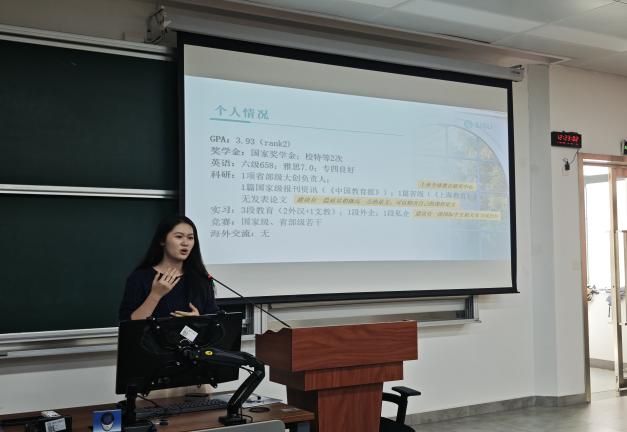10月23日中午,中文学院/国际文化交流学院于松江校区一教楼154室举行“青衿知行”生涯系列活动之2026届本科生保研经验分享会。来自2022级汉语国际教育专业的叶雨欣、陈思雨、汪云渡、王杨厶琪四位同学结合个人保研经历,从学业深耕、科研突破、实践落地等方面传授了实用经验。