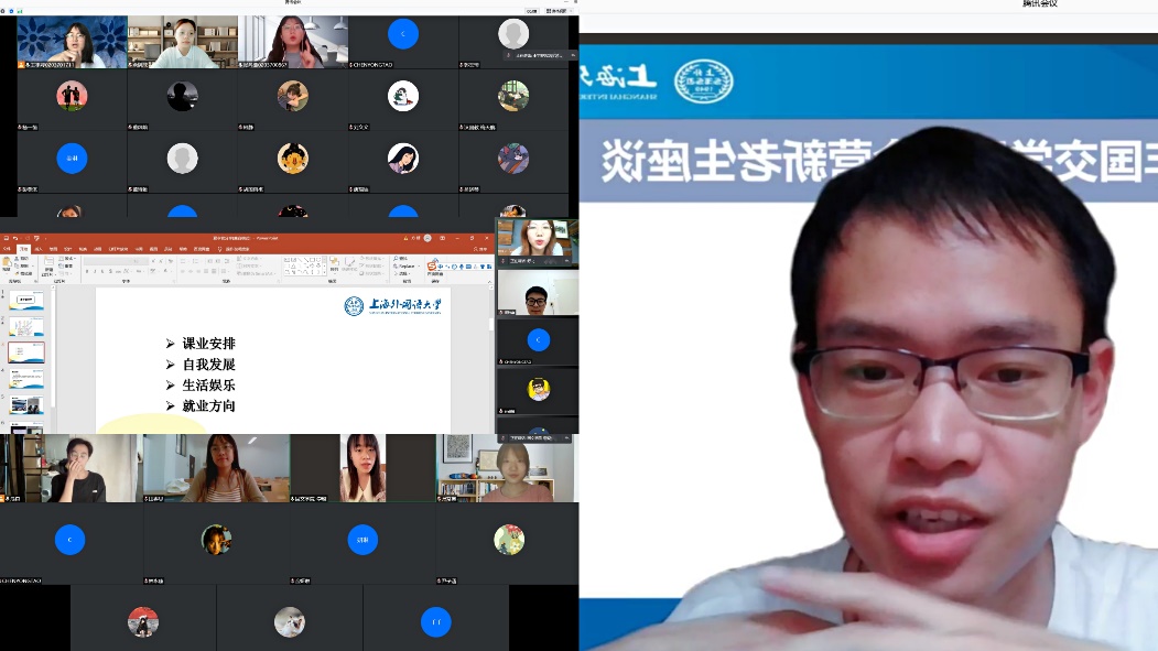 除了学术讲座,夏令营还为营员组织了新老生座谈会。营员按照所报考的专业进入不同的会议间,与2019级和2020级的学长学姐见面,就他们感兴趣的问题与前辈交流、探讨。座谈会上,同学们交谈甚欢,气氛热烈,营员们从另一个角度加深对学习在上外、生活在上外的认识。
