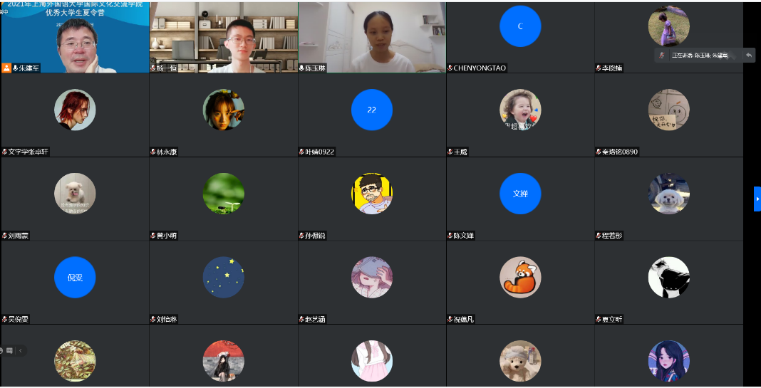 7月14至16日,2021年上海外国语大学国际文化交流学院优秀大学生夏令营在云端顺利举行。这是国交学院第四次举办优秀大学生夏令营活动。本届夏令营共收到来自全国100多所大学的300余名学生的报名材料,报名人数远超往年。经学院专家组严格的资格审核和选拔,最终共有来自全国50所高校的78名优秀学子参加了本届夏令营。