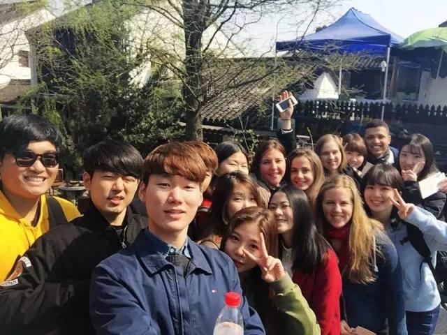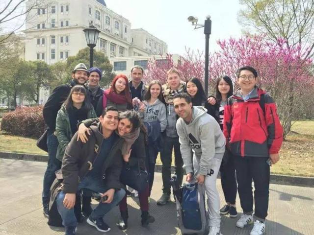 2016年3月25日,上海外国语大学国际文化交流学院组织部分留学生前往朱家角和我校松江校区前往参观交流。