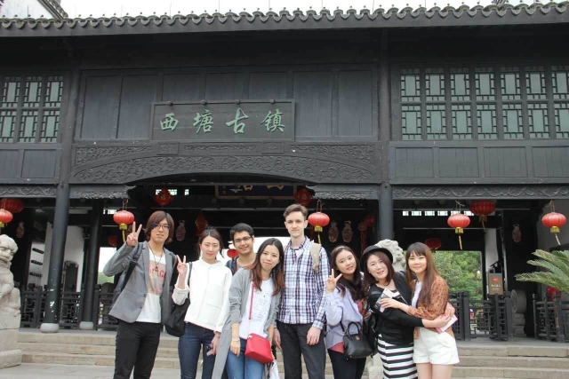 2016年5月7日至8日,国际文化交流学院组织在校外国留学生前往浙江省嘉兴市西塘古镇进行为期一天的文化考察。