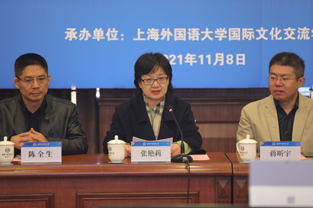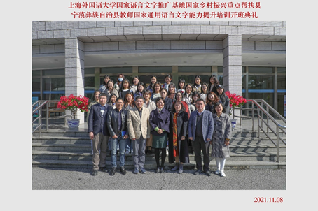 11月8日,上海外国语大学国家语言文字推广基地国家乡村振兴重点帮扶县宁蒗彝族自治县教师国家通用语言文字能力提升培训班开班典礼在虹口校区英伦厅隆重举行。上海外国语大学校长办公室(乡村振兴工作领导小组办公室)主任蒋昕宇,国际文化交流学院院长张艳莉、党委书记陈全生、副院长朱建军,培训项目负责人、专家组代表、团队代表参加典礼,上海外国语大学国家语言文字推广基地执行副主任周晓林和宁蒗彝族自治县第二中学100名教师学员以网络连线形式参加典礼。开班典礼由朱建军副院长主持。