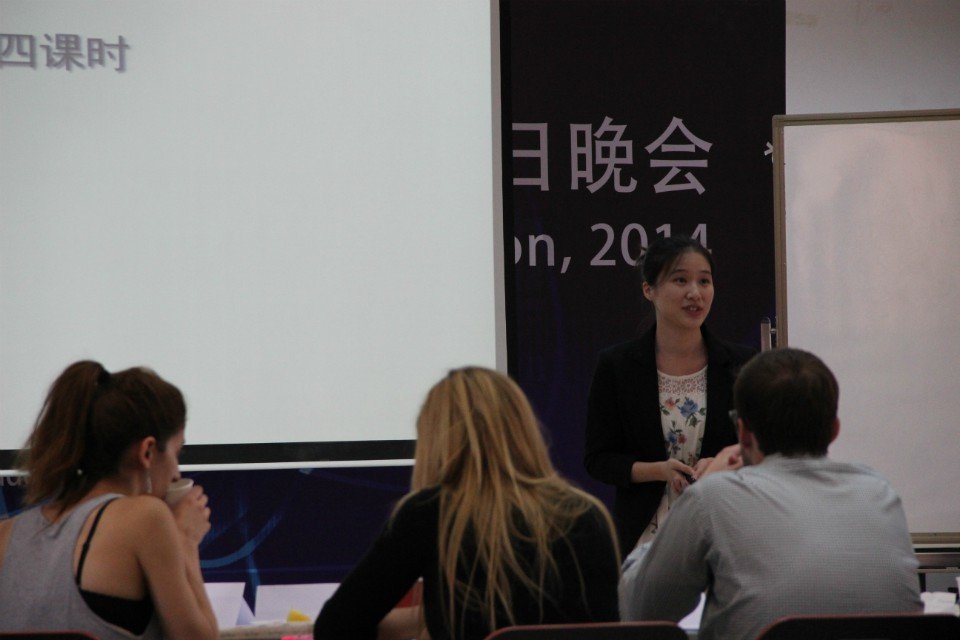第二部分为教学反思,每位选手根据自己在第一个环节中的表现,有一分钟的时间指出教学过程中的优缺点,评委可根据反思情况酌情加减总分。我校汉国教研究生杨蒙洁同学认为,在如何调动留学生积极性,如何激发学生兴趣方面还有待向其他选手学习。而汉国教的泰国留学生许佩珊则表示她仍然缺乏教学经验,上课时容易紧张,应该再多多练习中文。