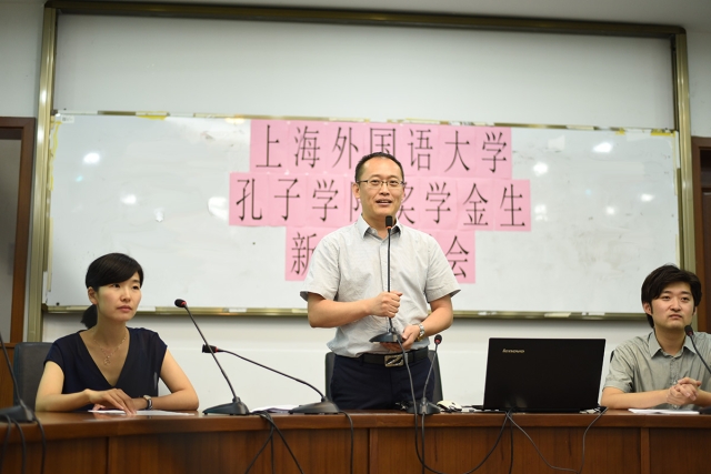 会上,国际文化交流学院副院长鹿钦佞向奖学金生们致欢迎词,鹿老师说,成为奖学金生,既是一件光荣的事,又是一件责任满满的事,希望他们在上外愉快生活的同时,不忘学习、不忘参加各种交流活动。接着朱璇老师向奖学金生介绍了一个学期的文化体验课程,重点强调了纪律问题。最后黄一苇老师用中英双语给学生详细讲了奖学金生的考勤规定。