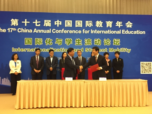 10月20日-21日正值第十七届中国国际教育年会,中国教育部副部长郝平、中国教育国际交流协会会长刘利民等领导出席了年会开幕式并做了重要讲话。据悉,中国国际教育年会是亚洲地区最大的教育交流盛会,此届年会有来自海内外40余个国家和地区的三千名代表参加。年会由“中国国际教育论坛”、“中国国际教育展”和“中外合作项目洽谈会”三部分组成,其中,“中国国际教育论坛”针对高等教育、来华留学生教育、基础教育、职业教育等多项议题组织了多场专题研讨会。
