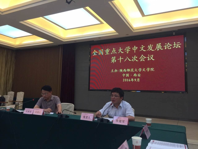 国际文化交流学院朱建军副院长应邀于2016年9月17-18日出席由陕西师范大学举办的“全国重点大学中文发展论坛第十八次会议”并发言。“全国重点大学中文发展论坛”自1999年由北京大学等单位发起,每年汇聚中文院系负责人,围绕中文教育的前沿问题展开讨论,旨在加强中文学科建设,推动中文教育健康发展。