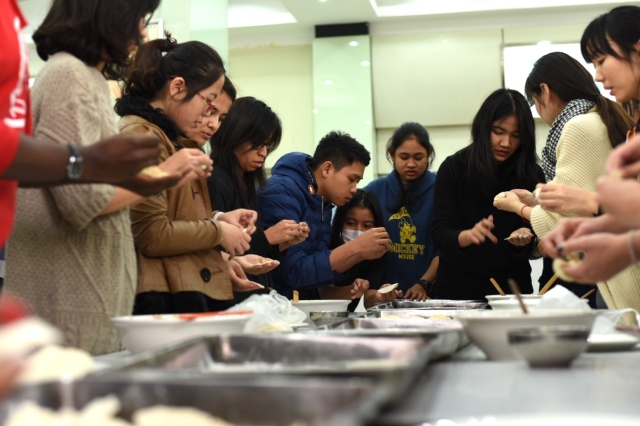 本次活动让孔子学院奖学金生们在双节期间体验了中国节日文化中温馨、团圆的气氛,不仅丰富了奖学金生们的业余生活,同时还加深了留学生们对中国特色的饮食文化和新年习俗的理解。(摄影:叶雯那文:左丽亚)