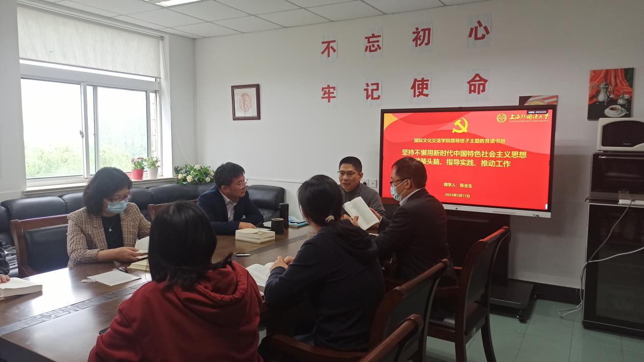 5月17日上午,国际文化交流学院领导班子举行学习贯彻习近平新时代中国特色社会主义思想主题教育读书班第十一次集体学习,党委书记陈全生领学专题 “坚持不懈用习近平新时代中国特色社会主义思想武装头脑、指导实践、推动工作”。陈全生强调,要深刻领会习近平新时代中国特色社会主义思想的精神实质和丰富内涵,全面系统掌握这一思想的基本观点、科学体系,把握好这一思想的世界观、方法论,坚持好、运用好贯穿其中的立场观点方法,同学院中心工作结合起来,把学习成果转化为攻坚克难、干事创业的实际成效。