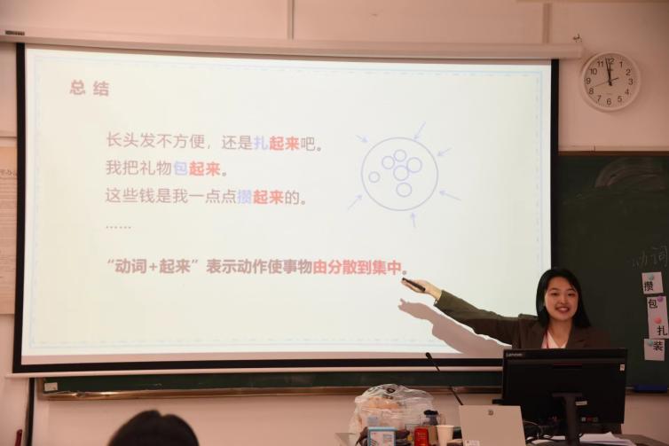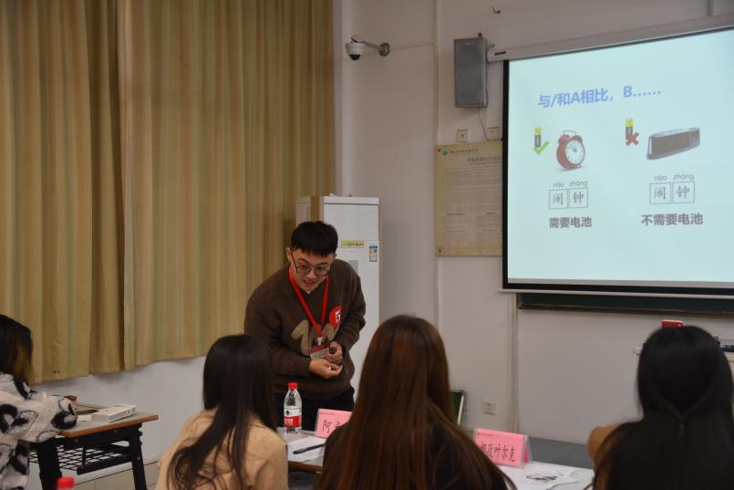 本次的教学技能大赛分为说课、讲课、问答等三个环节,具有一定的挑战性。学院领导、老师高度重视此次比赛,对参赛选手进行了针对性的指导,在赛前还带大家进入到真实的留学生课堂试讲练兵。课余时间参赛选手相聚研讨室,模拟试讲,互相点评,讨论更好的教学方法和教学设计。班级的其他同学抽出宝贵时间轮番做观众,给出参考意见、指出存在的问题。在比赛前夕,大家加油鼓劲,反复磨炼。最终,三位参赛选手以热情饱满的精神面貌,专业的教学姿态,以及生动的教学方法出色地完成了比赛,展现了上外汉国教研究生扎实的教学功底。