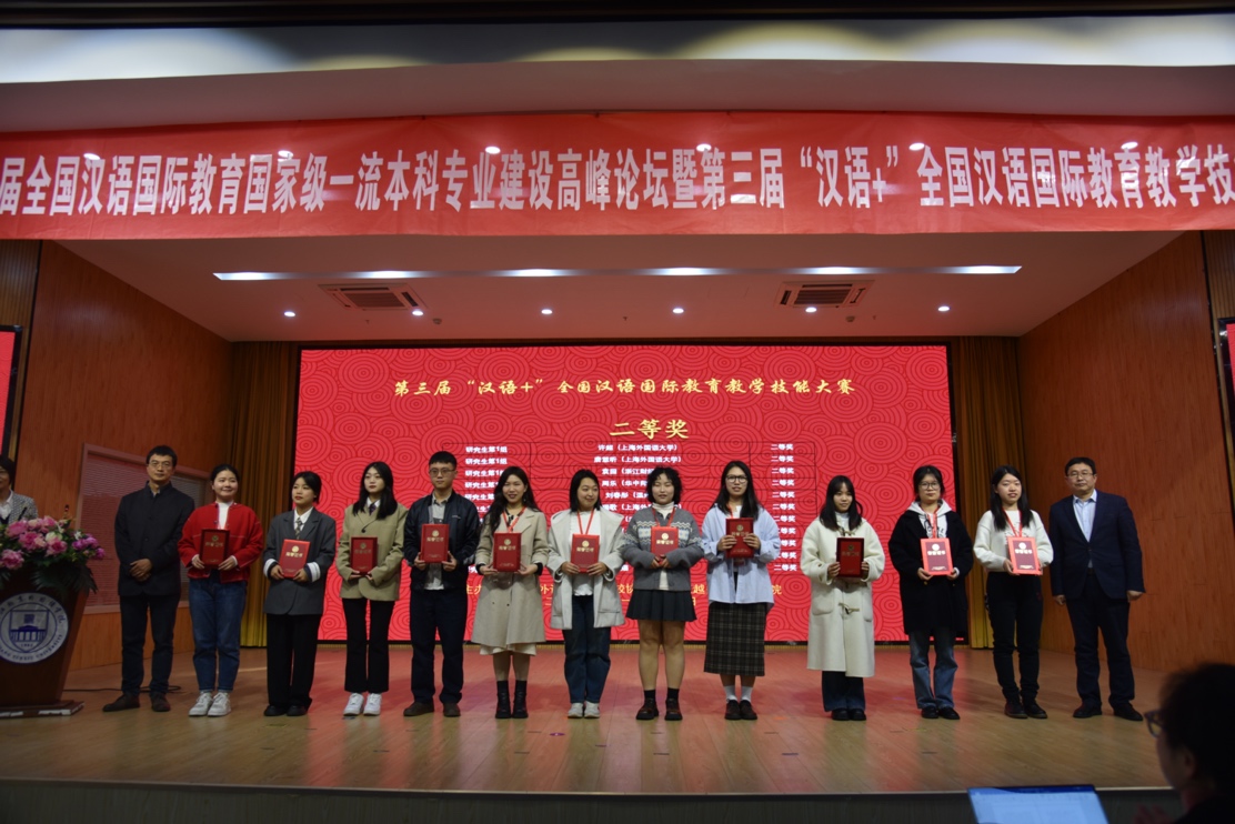 为进一步适应新文科背景下汉语国际教育专业的发展要求,推进汉语国际教育国家级一流本科专业建设,提升人才培养质量,11月24日至25日,由浙江越秀外国语学院与中外语言文化比较学会(国家一级学会)共同主办的“第二届汉语国际教育国家一流本科专业建设高峰论坛暨第三届‘汉语+’全国汉语国际教育教学技能大赛”在越秀外国语学院镜湖校区举办。来自北京大学、复旦大学、上海外国语大学等全国15个省市48所高校的优秀学子同台竞技,我院汉语国际教育专业3名研究生高瑞歌、许超、唐慧昕同学均荣获二等奖,充分展现了上外学子的卓越风采。
