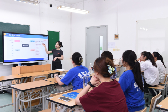 在7月5日至6日的专业测评中,营员们积极展示自己的专业基础和发展潜力,进一步与学院的老师进行了互动交流。在新老生座谈会上,国交学院各专业在读研究生向营员介绍了在上外的学习和生活,分享了各自的心路历程,带领营员从另一角度观察和认识上外。