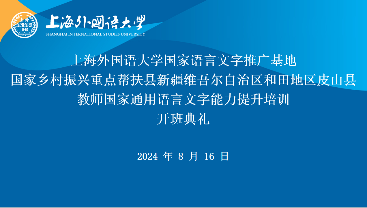 为进一步铸牢中华民族共同体意识,加大国家通用语言文字推广力度,推进民族地区推普攻坚行动,切实提高新疆皮山县中小学教师国家通用语言文字教学能力,8月16日,上海外国语大学对口新疆维吾尔自治区和田地区皮山县教师国家通用语言文字能力提升培训正式开班。