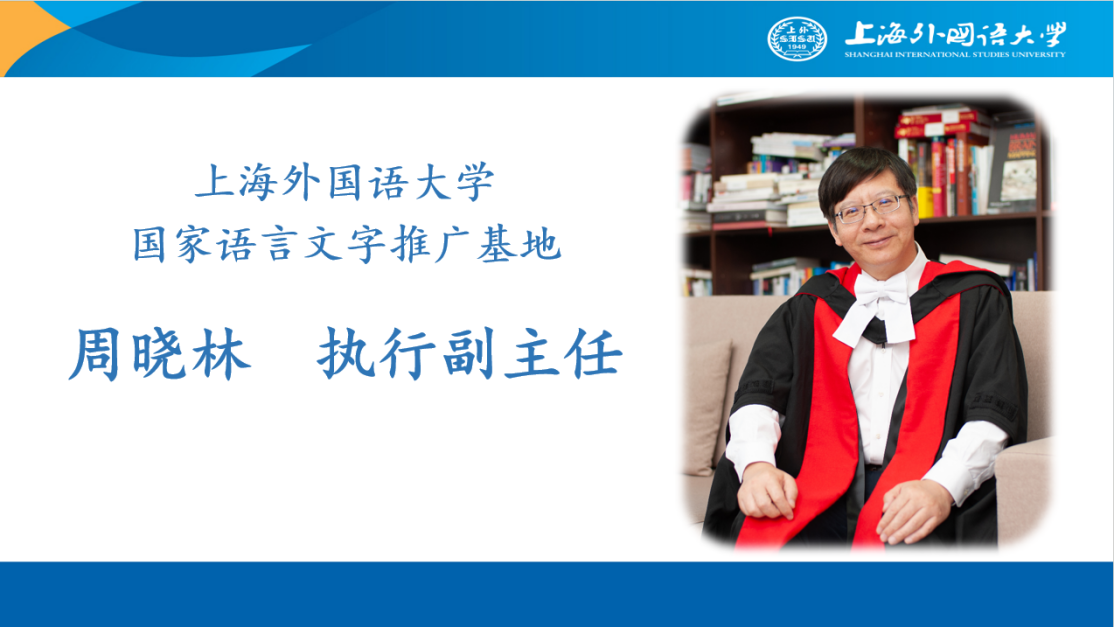 最后,上海外国语大学国家语言文字推广基地执行副主任周晓林教授致辞。他着重强调了开展教师国家通用语言文字能力提升培训的重要意义,希望双方能以此次培训为契机,积极开展线下交流,构建长效支持与合作框架,助推皮山县中小学教育和语言文字事业迈上新台阶。
