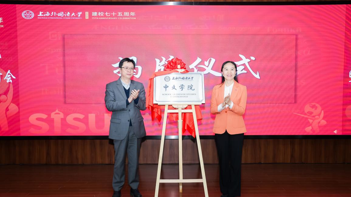 12月2日,上外“中文学院成立仪式暨中文学科建设研讨会”在松江校区国际教育中心举行。上海外国语大学党委书记尹冬梅、校长李岩松共同为中文学院揭牌。