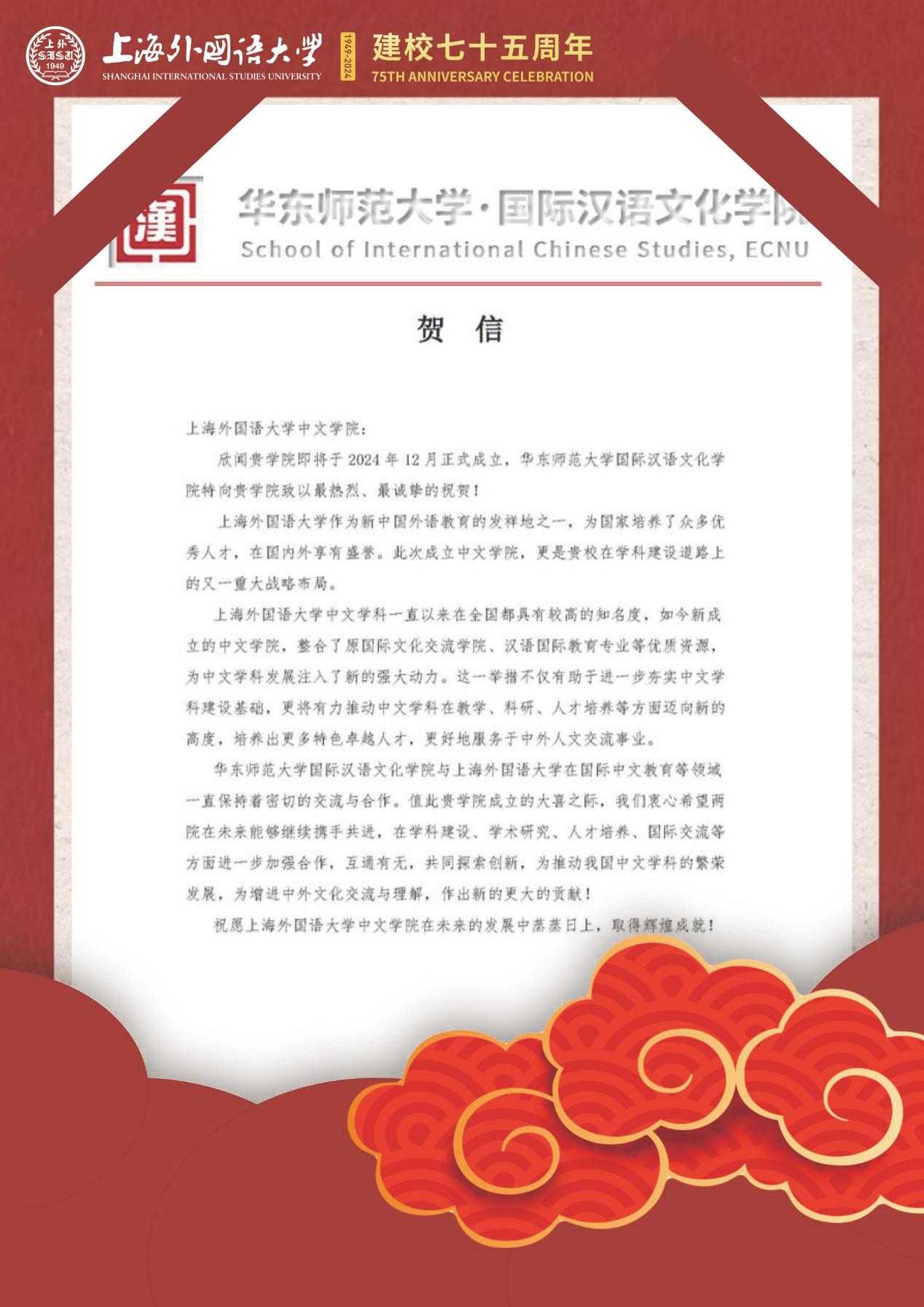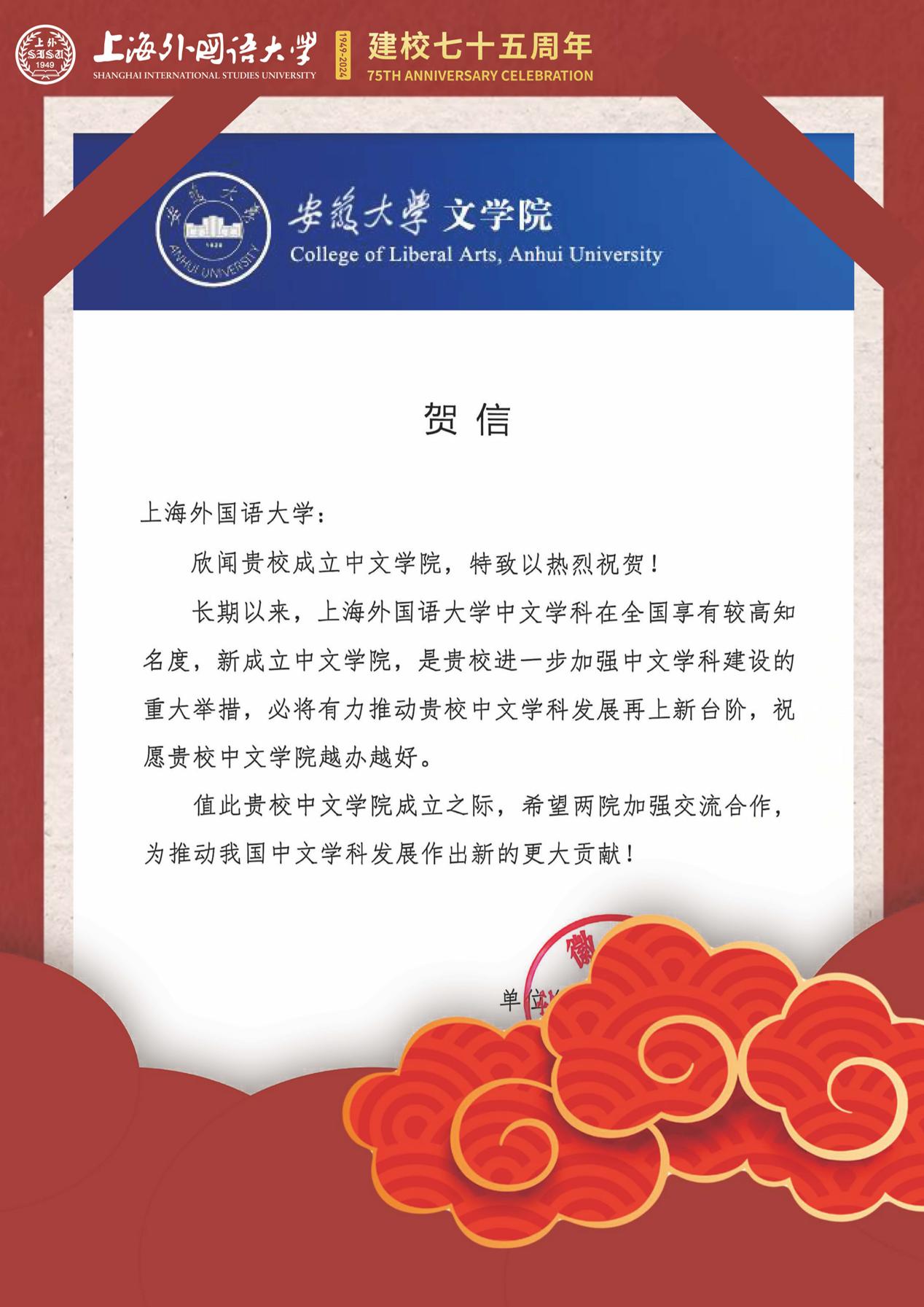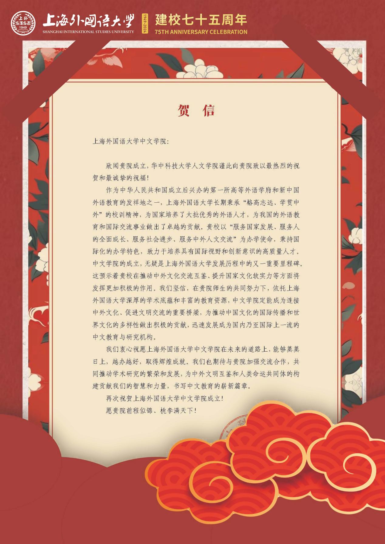 学院共收到32封来自全国各地兄弟院校的贺信