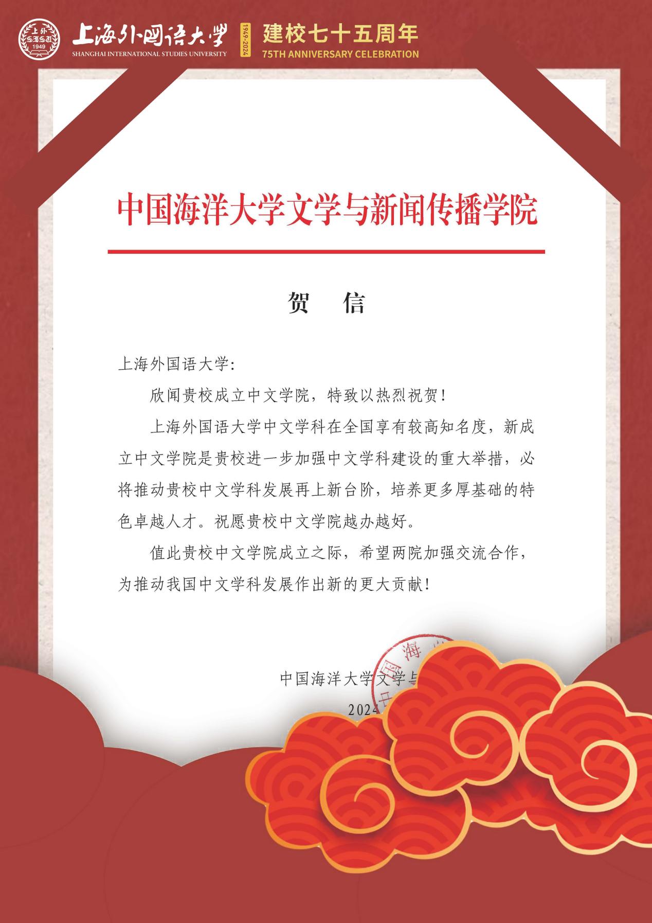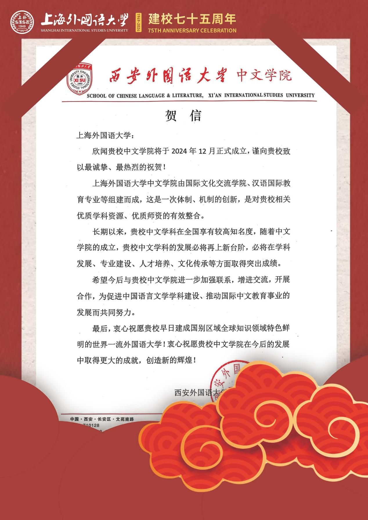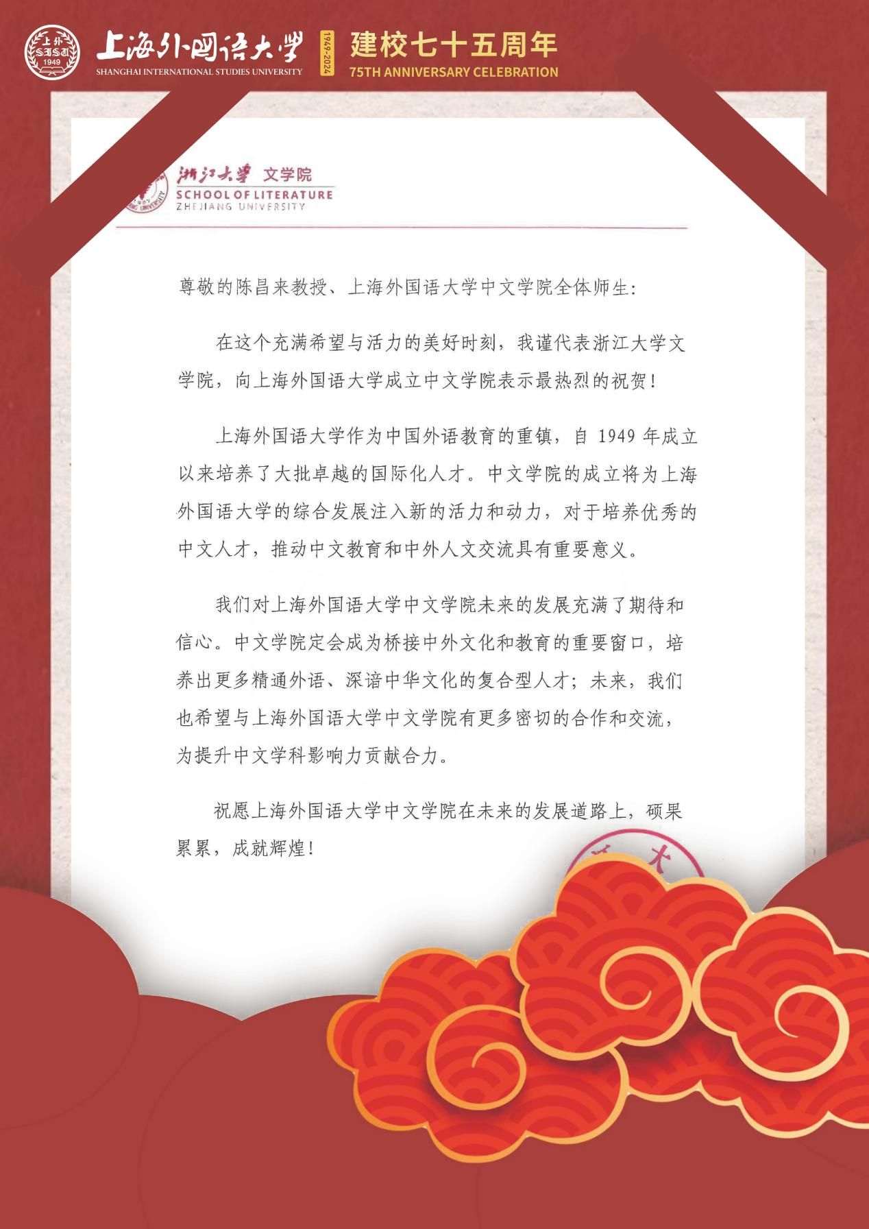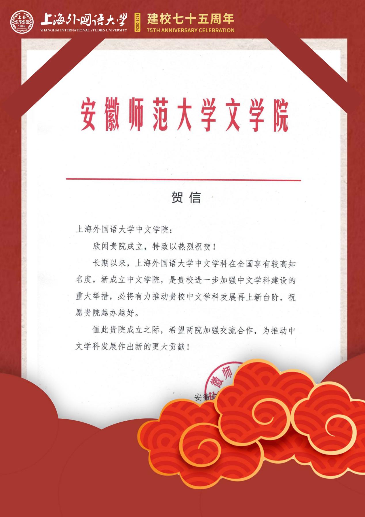 学院共收到32封来自全国各地兄弟院校的贺信
