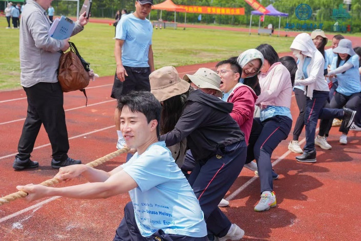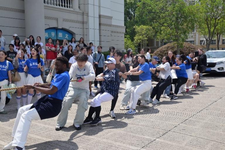 此外,中外学生的风采也成为了赛场上一道青春亮丽的风景线。在拔河比赛的激烈角逐中,由虹口、松江两校区、不同专业、不同国籍学生组成的队伍,为了共同的目标奋力拼搏,书写着中外学生共融的和谐乐章。由学生团队组成的4×100米接力也获得了全校第三名的好成绩,充分展示了青春的活力与风采。